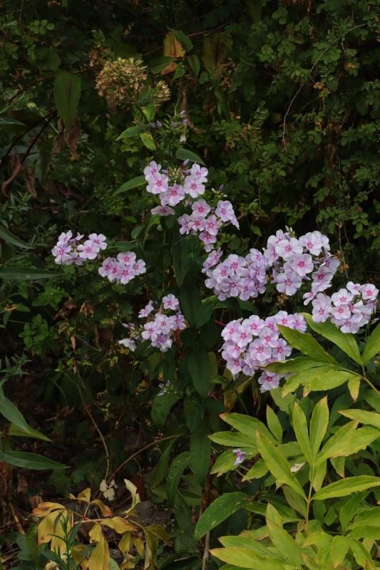 Die Phlox-Kaltschale aus Garten 1. Mit ein paar "Gewürzen". Einiges ist nur noch aus der schwachen Spät- und Nachblüte, bleibt kleiner als üblich oder ist, seltener, auch farblich abweichend.