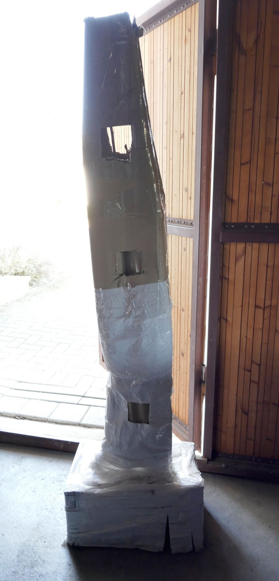 Etwas erschrocken welch schweres Monster mich in der Garage erwartete - Plastikkiste, Töpfe rein, und dann umwickelt - paar Gucklöcher für die Pflanzen gab es auch noch