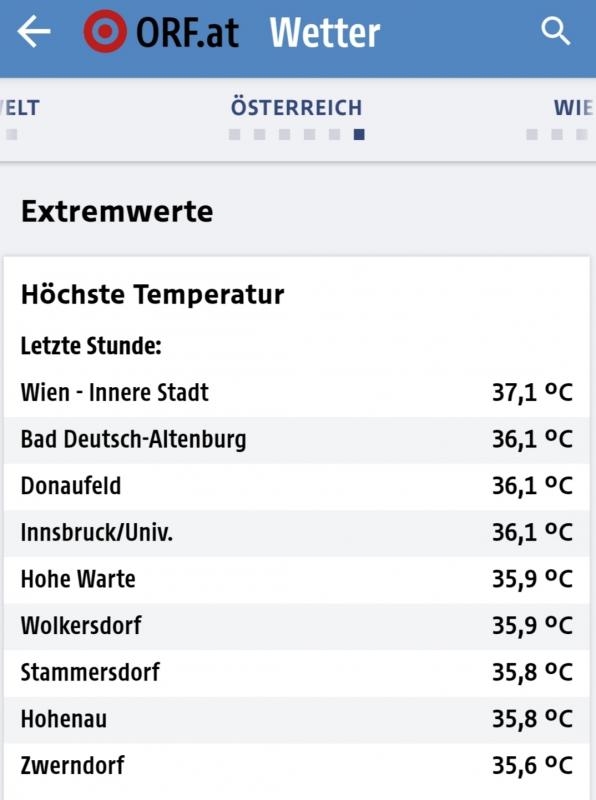 Update: 37,2 Wien City heute Maximum in AUT.