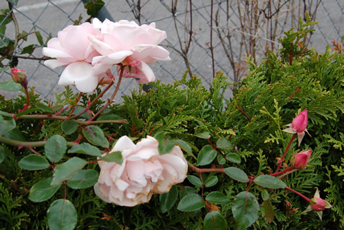 Die New Dawn mit langen Krakentrieben, das lässt ahnen, auf was ich mich da eingelassen habe. Die Blüten immer sehr schön