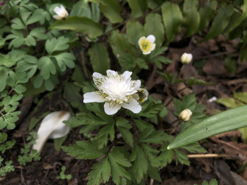 Hier hat sich ein gefülltes Buschwindröschen endlich eingelebt.