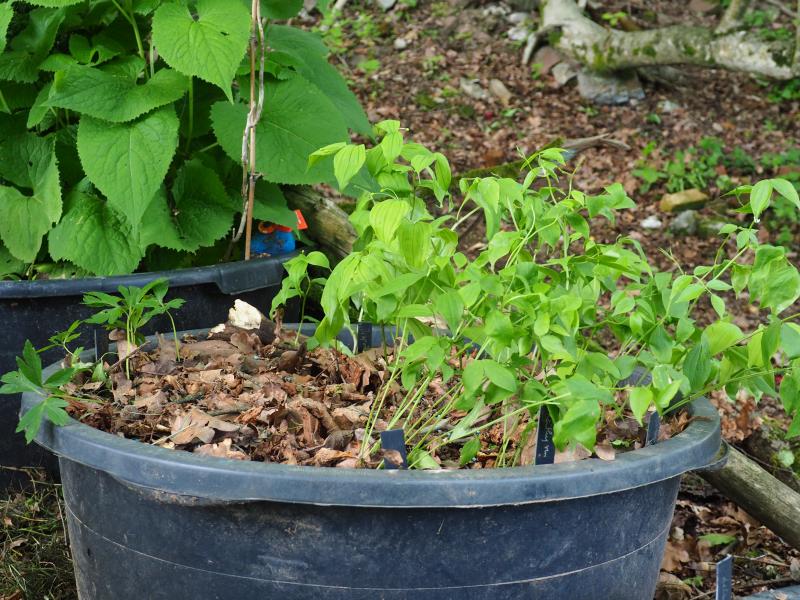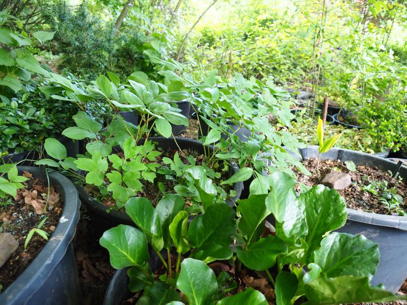 die Färber-Eichen Sämlinge von paw paw. Unterpflanzt mit diesem und jenem.