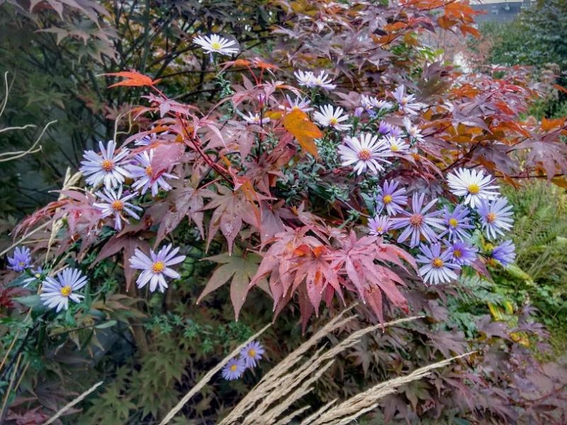 Aster amethystinus 'Herbstleuchten' gefällt mir hervorragend - die muss ich unbedingt weiter nach vorn ins Beet setzen.