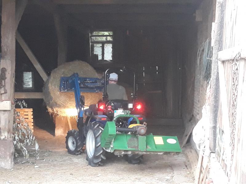Wir mussten erst die 6 Rundballen zur Seite schaffen und waren restlos erstaunt... unser Bonsaitreckerchen konnte die problemlos stemmen. Er dürfte auch nicht eine Nummer größer gewesen sein, sonst hätte das Rangieren in der Scheune nicht geklappt. Wie immer das bei uns weiter geht.... ob wir in der jetzigen Größe weiter wirtschaften oder aber noch wachsen... der Bonsaitrecker wird seine Berechtigung behalten.