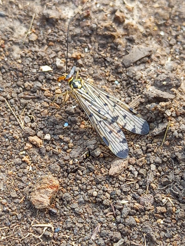 Hast Du noch mehr Fotos, Robin? Gerne auch unscharf, aber vom Körper. Sieht von der Musterung aus wie eine Skorpionsfliege Panorpa vulgaris ... ???