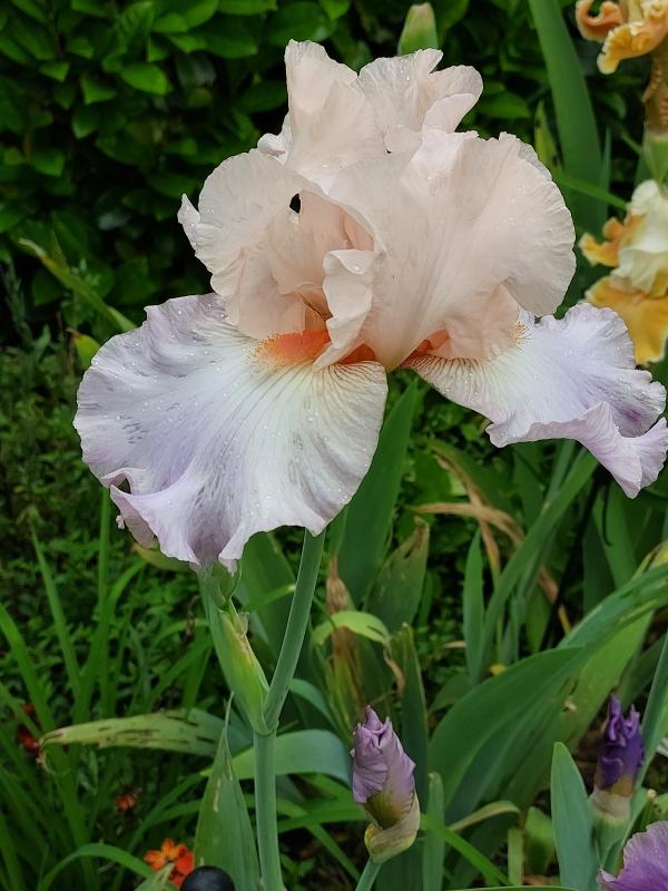 'Krimhilde' (Jan Stillhammer, R. 1993). TB, 28" (71 cm), Midseason bloom. Standards pink; falls blue, rimmed coffee brown; waved. 'Pink Angel' X unknown.