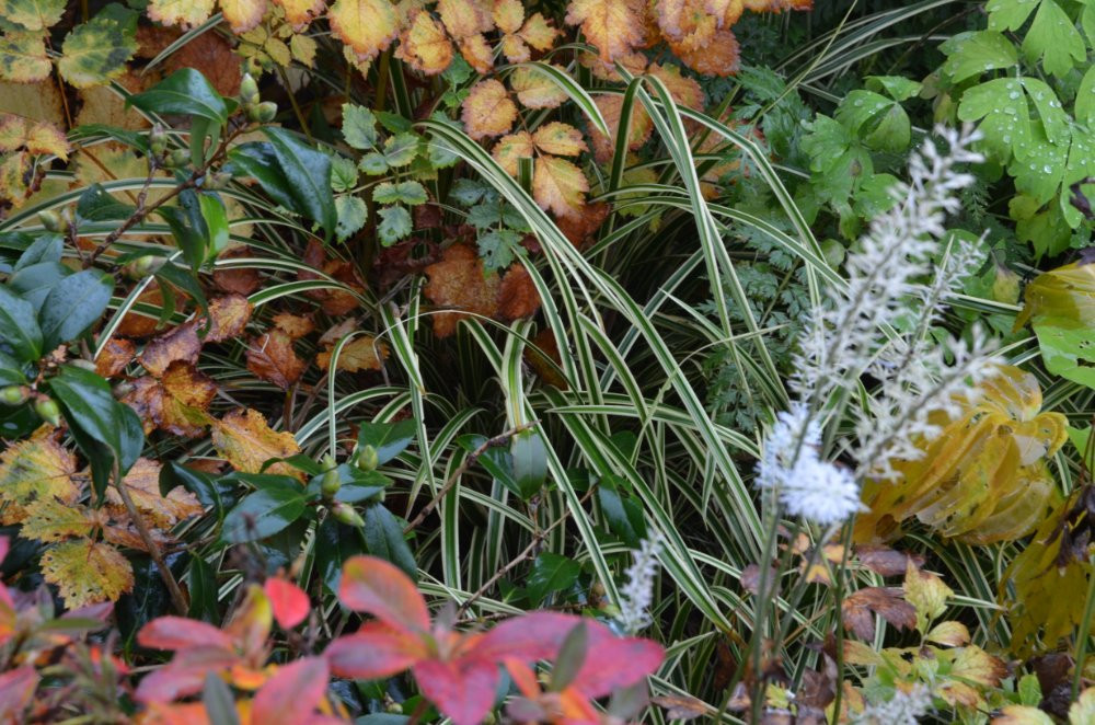 Carex habe ich auch, es wächst hier rechts im Bild unter der Magnolie, ein Foto von gestern, also ganz frisch.