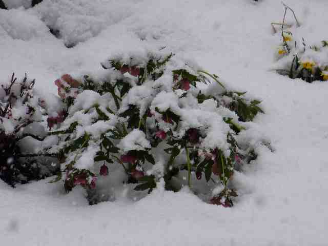 Liebe Schweizer-Helleborus-Freunde: macht Euch keine Sorgen über den Schnee. Wir haben bereits wieder Minusgrade, und da bringt sich der in diesem Falle willkommene Schnee als wärmenden Schutzmantel an