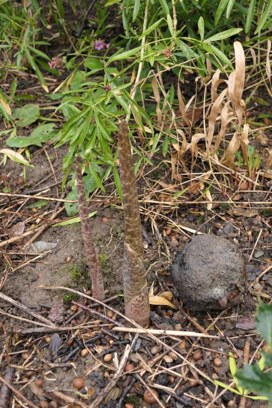 Die Triebe ragen schon fast 30 cm aus dem Boden hervor. Das wird bestimmt wieder eine wunderbare Stinkeblüte!