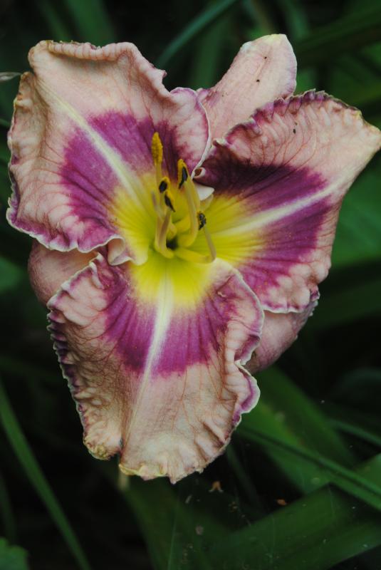 doch, geblüht hat sie, war aber nichts zum Züchten, zu niedrig und oft fleckig. In der Nähe standen Red Suspenders und TET Satan's Curls, letztere mit giftgrünem Schlund. Da muss irgendwas ohne mein Wissen gelaufen sein.Aus einem Fächer. Sie hatte wohl bei dir nie geblüht - und ich war zunächst hoch erfreut, dass sich ein Stiel zeigte (zwei, einen hat der Hagel abgeschlagen). Und der wuchs und wuchs.... Wo das Teil vorne steht (48 cm oder so?...).Die Blüte jetzt ist apart, denn der Schlund ist giftgrün. Schon ein Hingucker.