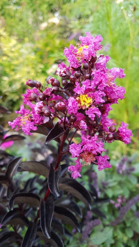 Ich hatte im Frühjahr eine grünlaubige Lagerstroemia gekauft - gleiche Größe .Die hat auch so toll geblüht. Darum dachte ich ja auch, die runden Dinger wären Samenkapseln .