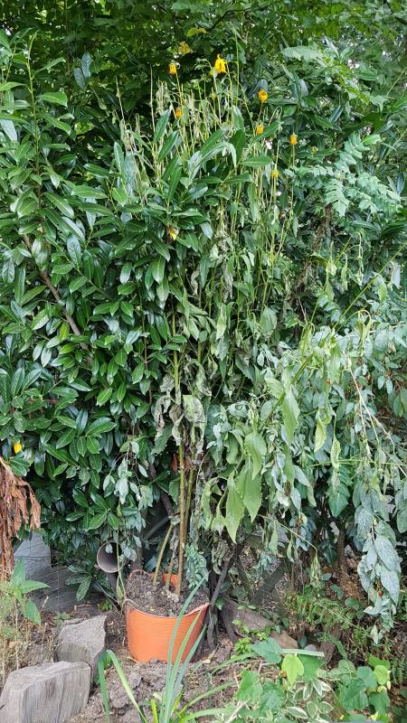 Ich kaufe ja alles , wo " helianthus" drauf steht. Im Rahmen der Garten Umgestaltung habe ich 4 Stiele Helianthus ausgebuddelt .Mich hat der Schlag getroffen, als ich die Wurzeln sah ! Die Wurzeln dieser Sorte ( Wildform ???,) habe ich mit Mühe und Not in einen 50 l Pott quetschen können.Die Pflanze war ca. 2, 5 m hoch , fast Baum artig und die Blüten wie von Topinambur , aber größer und etwa doppelt soviele Blütenblätter.