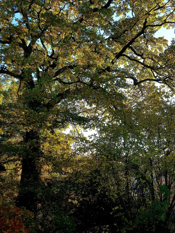 Nachbars Eiche - da kommt noch einiges an Biomasse auf uns zu diesen Herbst