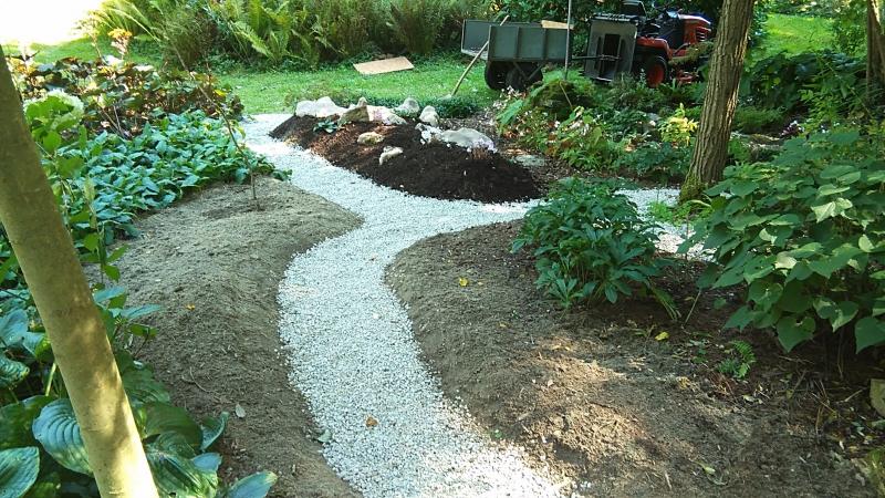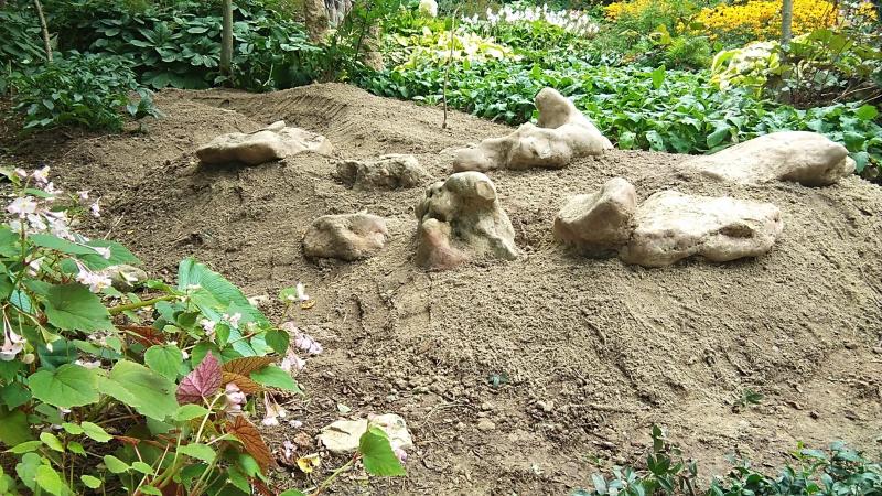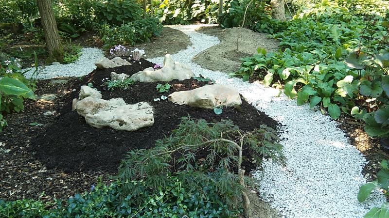 Wege angelegt und Findelsteine auf "stone hill" positioniert.