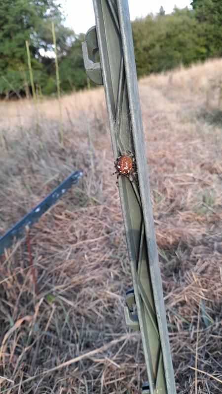 Hier noch ein Blick auf die fertig beweidete Fläche. Hinter mir steht noch eine Reihe Zaun unter Strom. Auch hier musste ich viel flicken und ein Netz aufgeben. Das war allerdings auch bestimmt ein Netz Ü 10 Jahre. Aber auch daraus habe ich die Stäbe ausgebaut. Kann man alles noch wieder verwenden. Es kostet halt nur Zeit :P