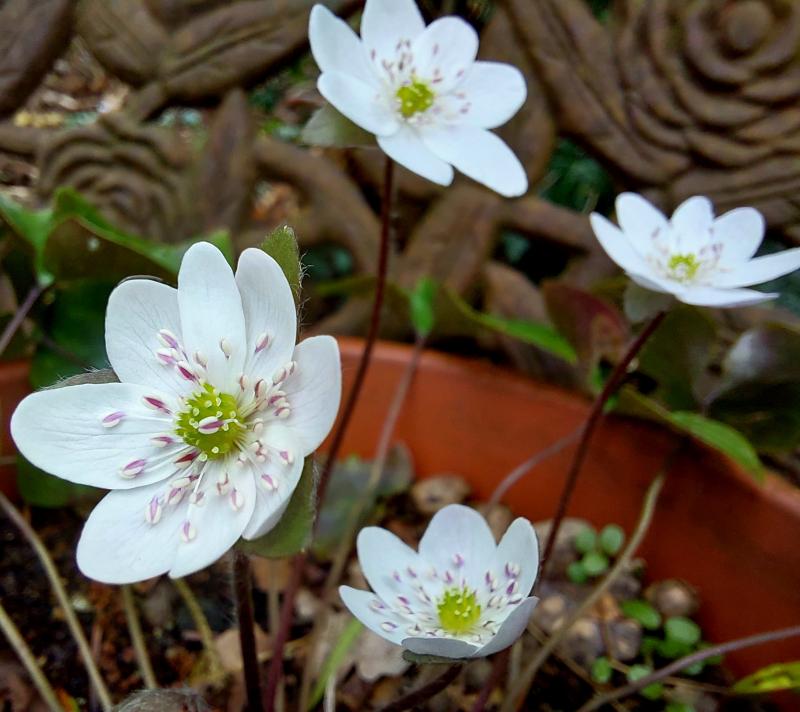 Sie stehen immer noch im Topf, weil ich keine wirkliche Idee habe, wo ich sie hinpflanzen soll. Ob sie wohl mit Eranthis gut klarkommen?