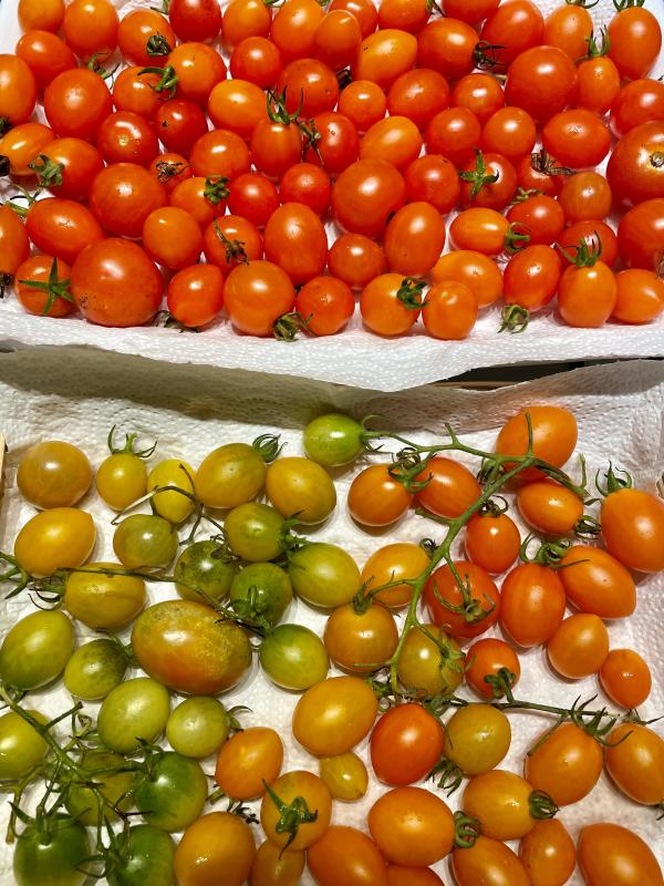Das ist alles nicht viel. Aber ich freue mich über jede Tomate, die ich jetzt noch aus dem eigenen Garten esse. Geschmacklich bin ich zufrieden. Passen gut in einen Radicchio-Rucola-Salat mit Paprika.