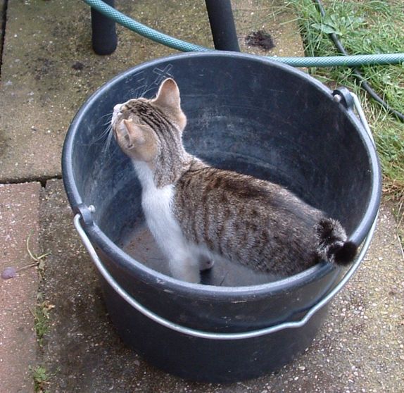 Im Allgemeinen sind draußen selten Schachteln zu finden, da tut´s dann auch ein Eimer.