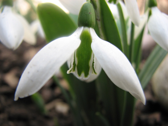 Aufgeblüht ist bei mir noch kein einziges Schneeglöckchen. Am weitesten ist 'John Gray', der dem Frühling aber noch nicht so recht traut.