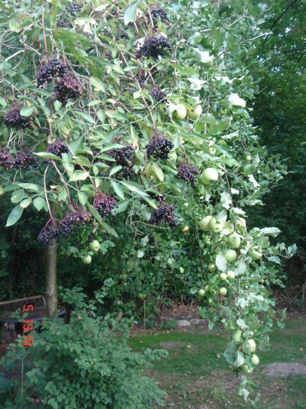 Fliederbeeren gibt´s auch reichlich, dahinter die Apfelsorte " Zuccalmaglio ", noch nicht pflückfertig.