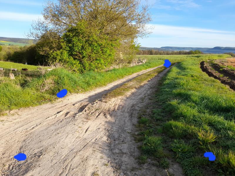 So. Und jetzt das Kontrastprogramm: Dafür zahlt der Staat, sprich wir alee Förderung. Acker in Hanglage. Totgespritzt. Und wenn da ein Starkregen kommt, dann spült es u.a. den Mutterboden auf einen Weg und wenn es ganz schlimm läuft auf den Brinkplak. Und weil das nicht immer läuft, sondern versickert - die Flurbereinigung sah da wohl keinen Anlass zu irgndeiner Wasserführung- da versickert das im Wegekreuz. Was dazu geführt hat, dass man den dich dort bildenen Erdfall schon einmal geflickt hat. Das aber zukünftig nicht mehr will, weil man sei nicht zuständig. Ob wir dauerhaft den Brinkplak bewirtschaften können, steht in den Sternen. Wenn sich der Erdfall weiter ausdehnt, wird dieser Acker abschmieren. Also nicht eventuell oder so. Sondern das wird dann passieren. Gefördert. Denn es gäbe nur einen Weg: Der Acker müsste dringend Grünland werden und die Wasserführung müsste mit Bedacht neu gemacht werden. Aber: Im Resort ist kein Geld für Beweidung in Hanglage und das Versuchsgut... macht halt die geförderte moderne industrielle Landwirtschaft