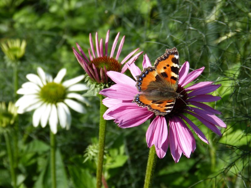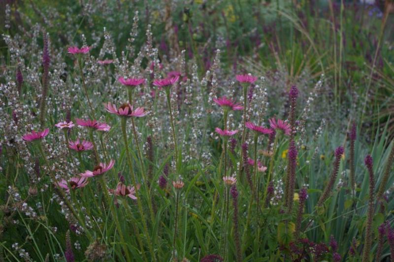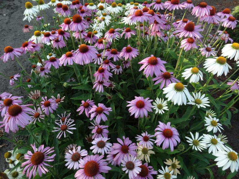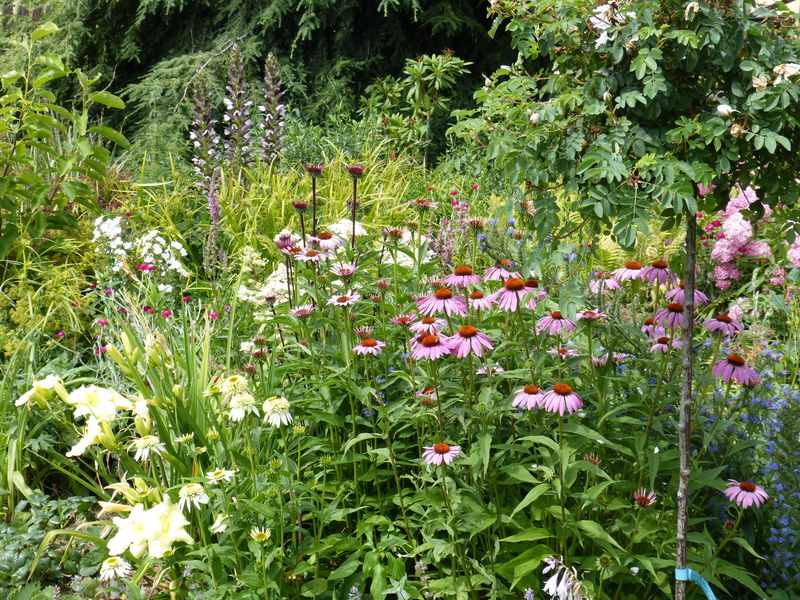 In den Beeten ist Echinacea bei mir nicht sehr standfest und langlebig aber diese freistehende Gruppe wachst seit Jahren sehr gut.