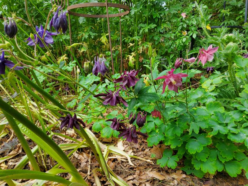Diese sehe ich hier sehr häufig, in und vor vielen Gärten ... besonders beim direkten Nachbarn, wo sie kaum gejätet werden. Diese doppelten oder mehrfachen Nektarblätter werden meiner Meinung nach durch die Anwesenheit gefüllter spornloser sehr begünstigt ... wo bei mir nur ungefüllte stehen, kommt sowas kaum vor.