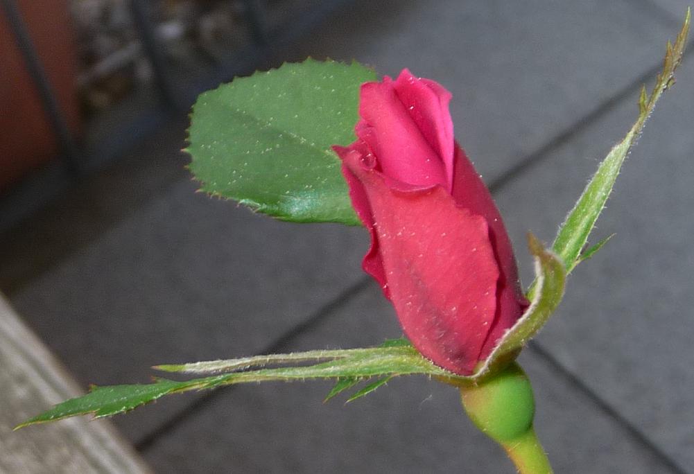 Bei mir wächst auch gerade was Rotes heran, schwer zu fotografieren, es ist dunkler und nicht so bläulich. Aber ich bein halt kein Fotograf, nur ein Knipser. Aber kein Knospenknipser, ich knipse zwar die Knospen, aber ich knipse sie nicht ab! Niemals! Sei es auch besser für die Rose, ich bin ja auch noch da!