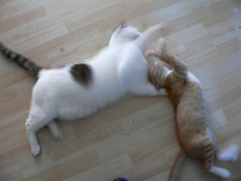 GRÜNCHEN, ist alles in Ordnung. Martina hat ja geschrieben, dass ich nicht tagsüber schnell mal hier reinschauen kann.Es ist so verdammt ruhig hier. Bubu traut sich nicht recht rüber, dafür leistet ihm Dönerle Gesellschaft. Türen stehen jetzt alle offen.Mir fehlt mein Schmusebärchen so sehr.Miezi war einfach nur lieb und zärtlich. Fery war unser Clown und seine Schmuseanfälle glichen einem etwas derben Überfall und er war überwiegend Papas Kater. Und Mucki war fast 12 Jahre lang mein Schatten. Wo ich stand oder saß, da war Mucki. Er schlief in meinem Arm, ganz fest an mich hingekuschelt, die Pfötchen an meinem Gesicht. Er fehlt mir so sehr, mein zärtlicher, kleiner Muck.