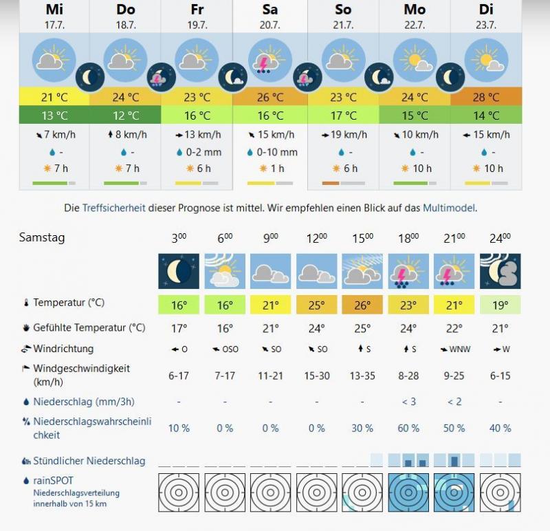 Wettertechnisch soll es bis ca. 18°° warm und trocken bleiben, dann evtl. Gewitter...