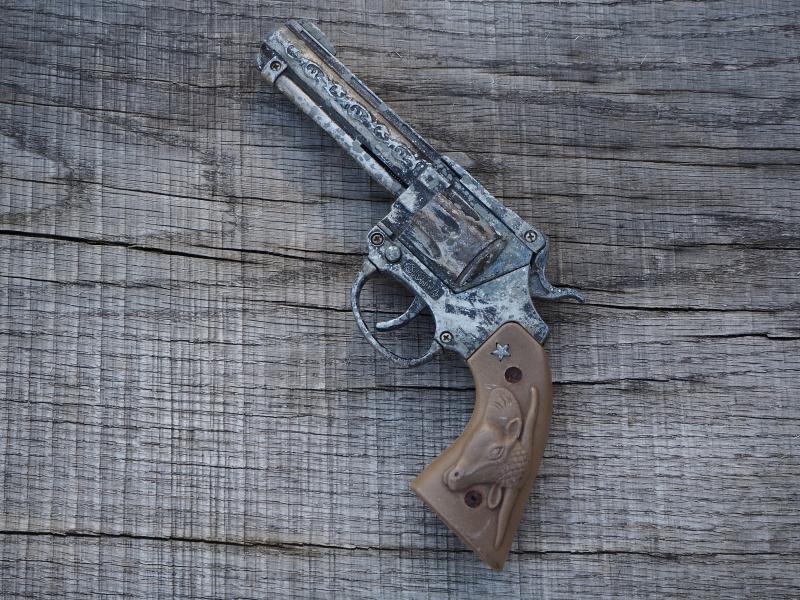 Idealismus scheitert an der Realität. ;) Natürlich schenkten wir unseren Söhnen kein Kriegsspielzeug. Also kauften sie sich selbst eine Pistole. Das Ding liegt hier seit 25 Jahren herum.