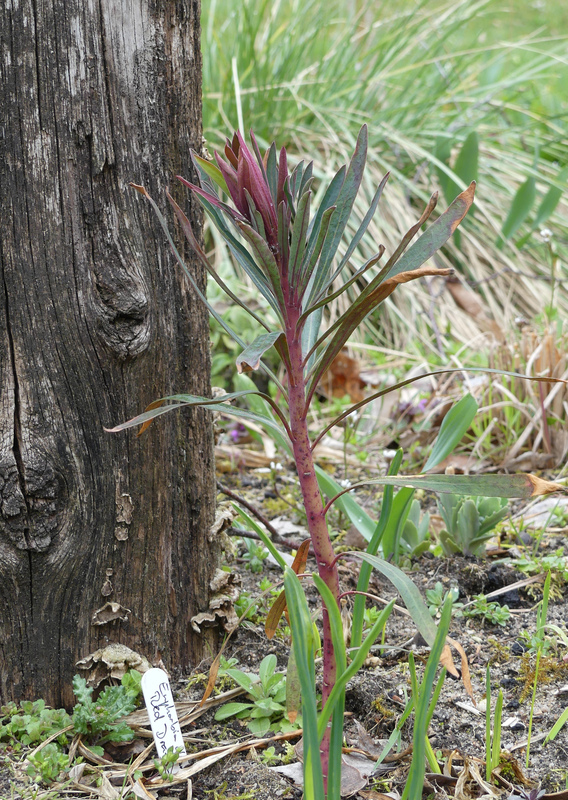 E. characias hält sich hier an einer Stelle ganz gut. Neu hinzugekommen ist 'Red Dragon'. Den ersten Winter hat sie dank Schnee gut überstanden. Ich hoffe auf weitere.