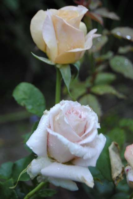 Hier fangen gerade einige Rosen nach einer Pause wieder an zu blühen, z.B. Scepter'd Isle