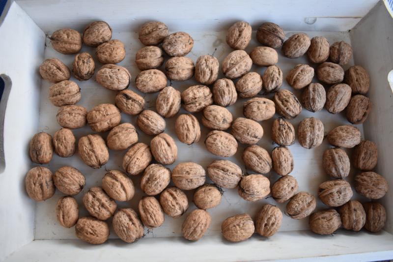 Die ersten Walnüsse vom Baum meines Großvaters, um 1920 gesetzt, sind reif. Der Baum ist vital, und noch mehr gewachsen, unter Trockenheit hat er wohl nicht gelitten.