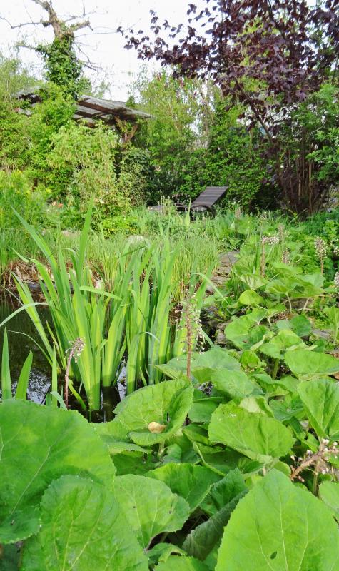 So weit ist die Vegetation hier noch nicht. Von den Hostas sind Hörnchen zu sehen oder etwas Blattspitzen. Entrollt ist noch kein Hostablatt.