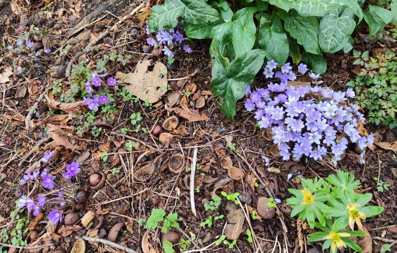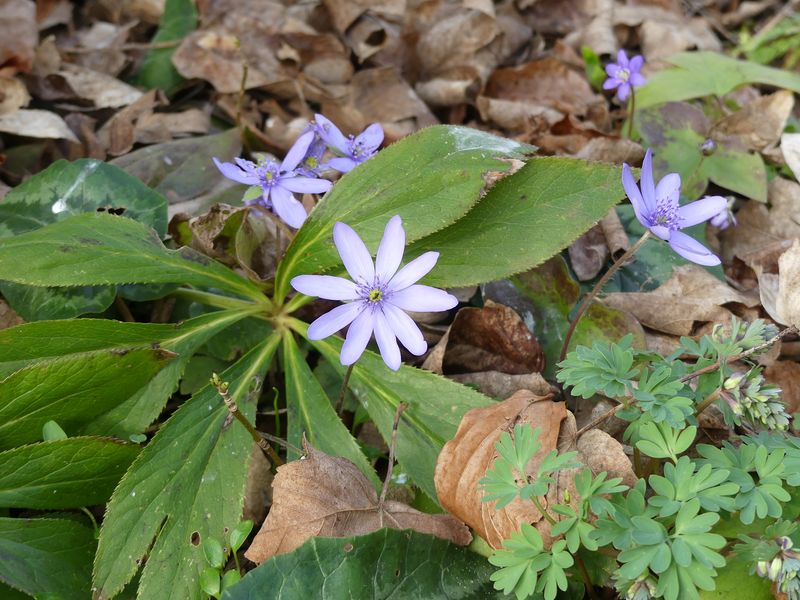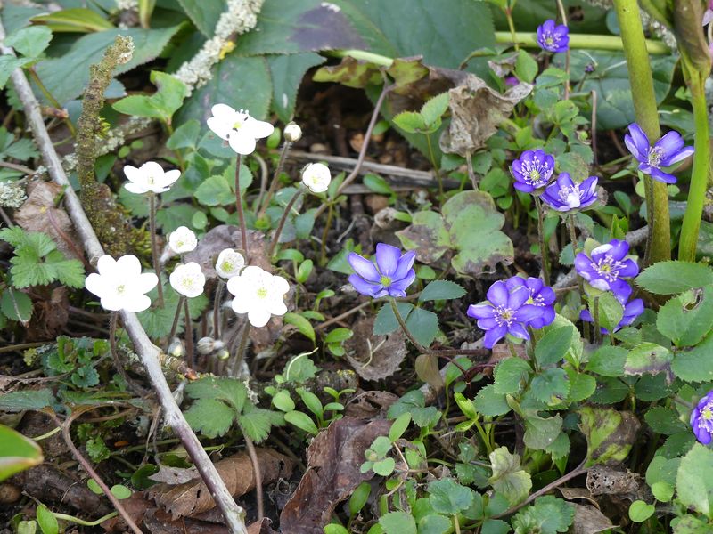 Von den Woodside-Hepatica stehen hier auch einige. Die weißen sind verschwunden, die "roten" können sich aber durchaus sehen lassen.