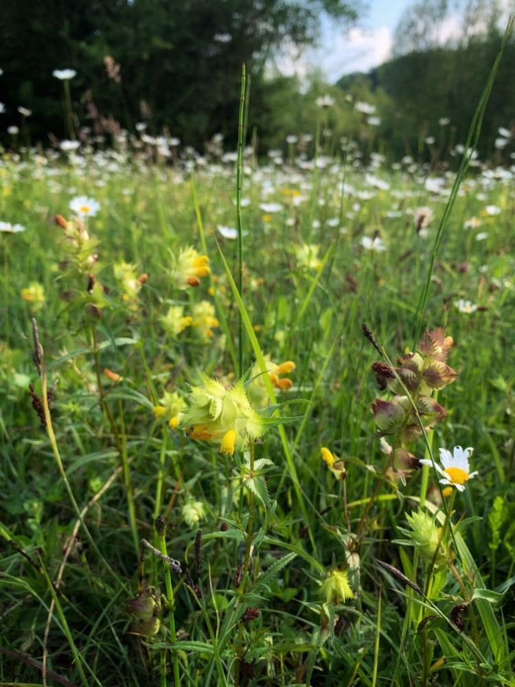 Ich nehm die Wiese mit Klappertopf, Margeriten, Scabiosen und mehr...nicht bei mir im Garten, sondern von einer meiner Hunderunden zu den Wildwiesen :