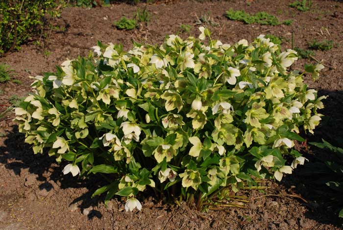 Diese weiße Helleborus Hybride steht im boga, es ist eine einzige Pflanze
