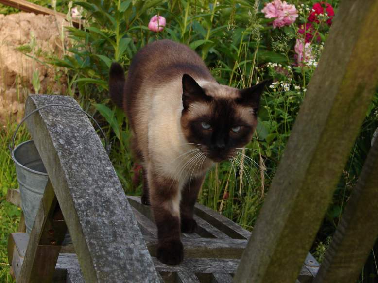 Zulassen schon, aber soviel Augen hab ich gar nicht. Sie knurren wie tollwütige Hunde, wenn sie ein Kleines sehen. Puschkin, mein Sensibelchen bekommt panische Angst und flüchtet in eine andere Etage. Das ist natürlich auch nicht der Sinn der Sache.Hier begutachten Ghismo und Puschkin den neu entstehenden Gartenweg. Wir haben bei der Arbeit immer die Aufpasser dabei! Der dicke Meister läuft immer prinzipiell über frisch eingemörtelte Steine drüber und versenkt sie um ein paar Zentimeter....