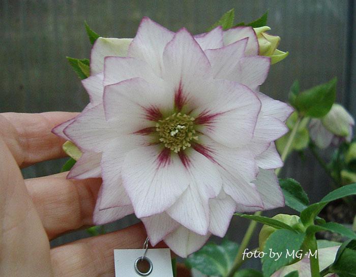 .@toto, nein, die Helleborus brauchen bestimmt nicht unbedingt den Schutz des Gewächshauses. Und sie werden mit Sicherheit auch irgendwann ausgepflanzt.Diese Helleborus gehört zu meinen absoluten Favoriten. An den Fingern im Bild dürft ihr euch nicht stören. Auch die Blüten, die ohne Hilfe seitlich schauen, mußte ich bei den mageren Lichtverhältnissen ein wenig mehr ins Licht heben, da ich keinen Blitz benutzen wollte.