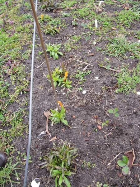 Damit blommorvan was zum Gucken hat: Das ist ein Teil der Sämlingsreihe mit Abkömmlingen von 'Drakon'. Zum Zeitpunkt des Fotos noch ungejätet, aber die Lichtverhältnisse waren eh schon schlecht....
