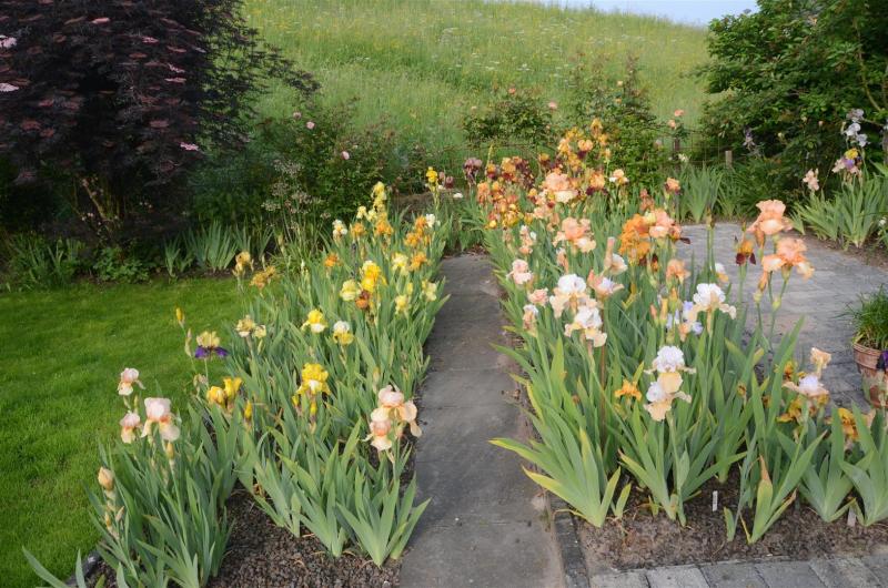 einzelblüten zu fotografieren schaffe ich derzeit nicht, dies ist der alte (noch unverpflanzte) irisbeetteil gestern abend, nach zwei wochen abwesenheit.