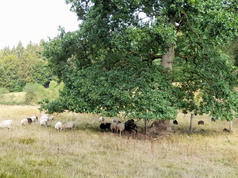 Anbei noch die Skudden - natürlich unter einer der Eichen. Unter diese dürfen sie, die ist noch stabiler. Und natürlich lieben sie die, weil sie darunter die natürliche Mast finden.