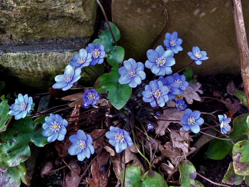 Hepaticas schaffen zig verschiedene Blautöne, hier eine eher hellblauer Sämlingspflanze.