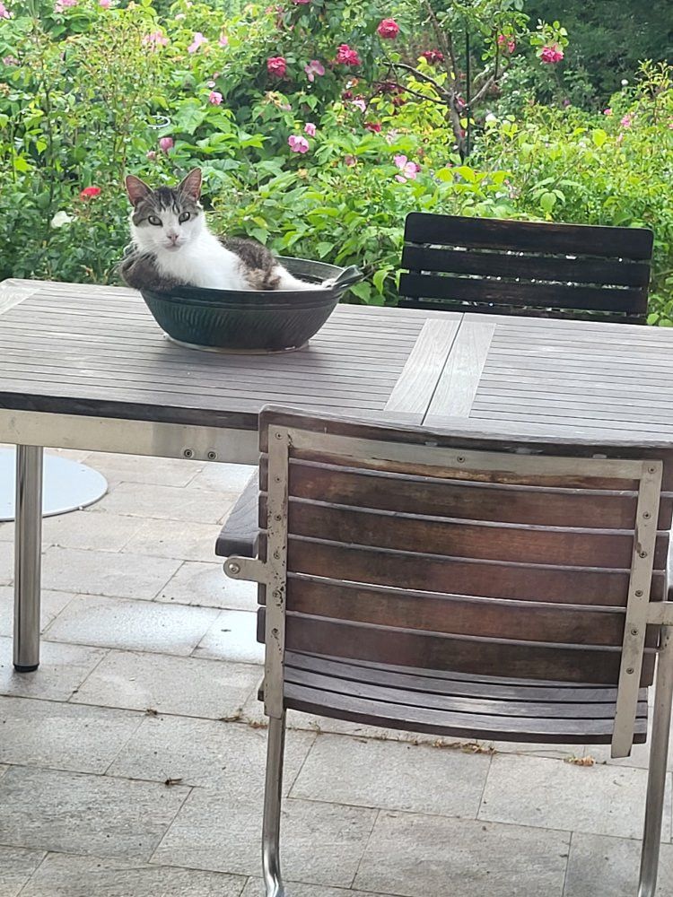 Und biete außer der Katz noch Bohnenkraut, Steine und einen Kupferkessel zum Anlegen an.