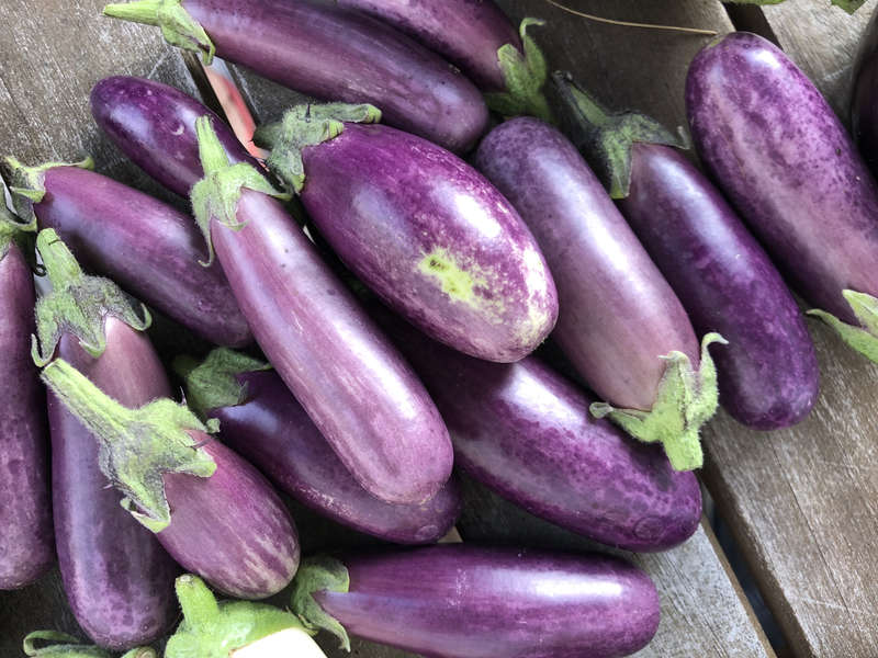 Solanum melongena var. depressum: Klein und rund. In Asien sehr beliebt.