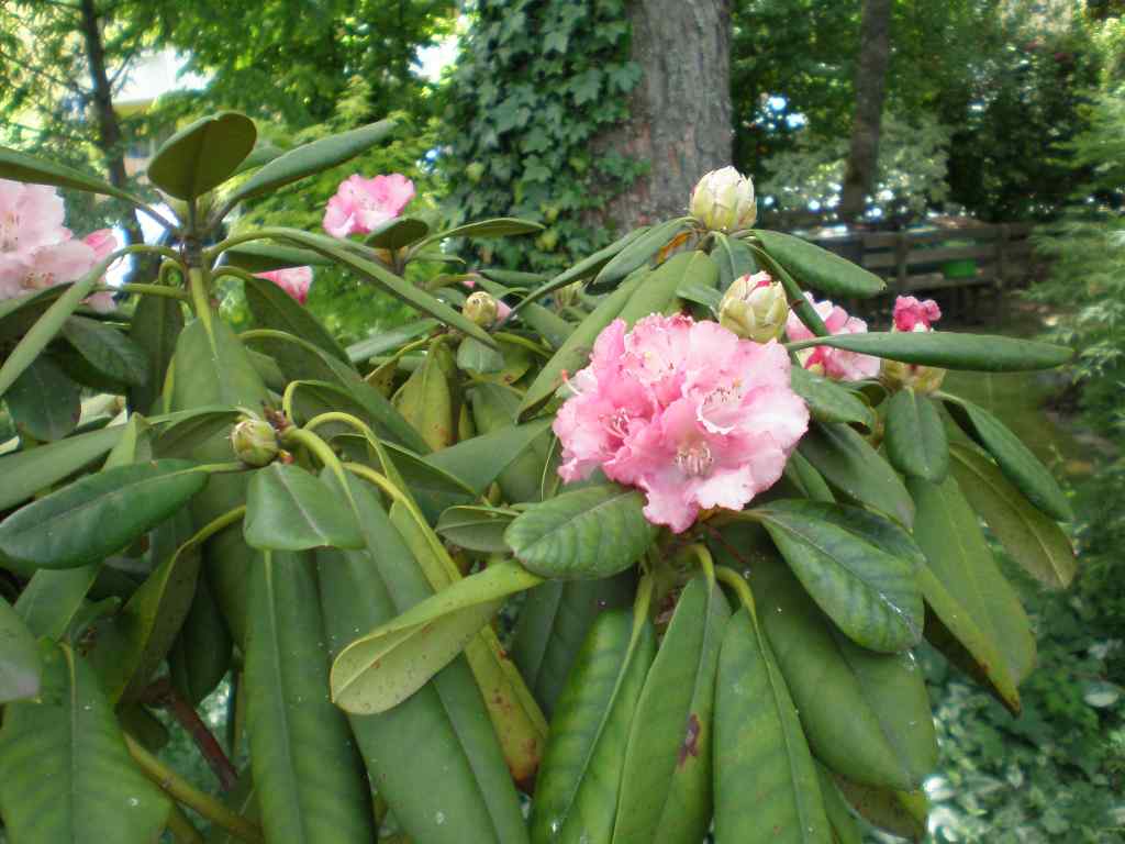 nun beginnt ein yakushimanum-hybriden-bäumchen mit der blüte. es ist eines der drei kranken bäumchen (#1009).