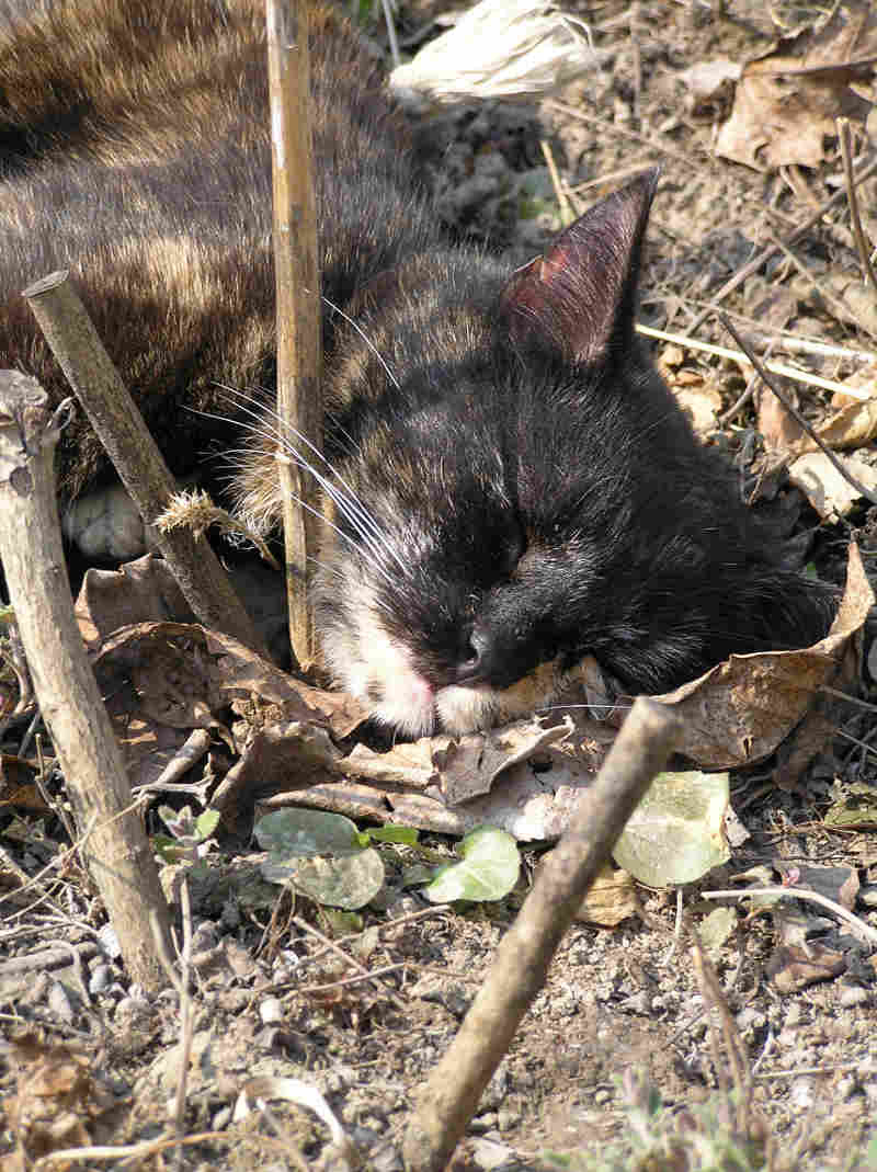 Und hier ist sie gerade im Katzenminzedrogenrausch trotz Schutzstäbchen