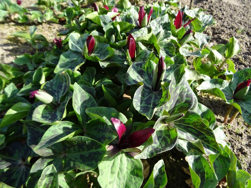 und weiter, Trillium underwoodii Gruppe mit 9 Stück, vor ca 10 Jahren ausgesät aus Alabama