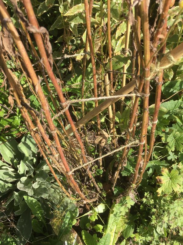 leider habe ich nur in great dixter darauf geachtet und ein photo für dich mitgebracht. dort wird gestäbt und gewickelt. :P